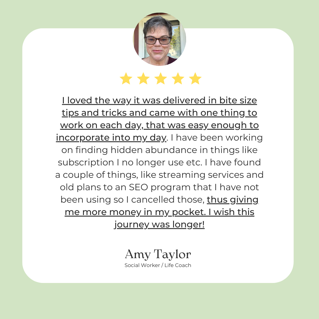 If a calmer, cash-friendlier season sounds good, this 21-day email series is your next right step. One short email a day. One clear action. Real momentum.