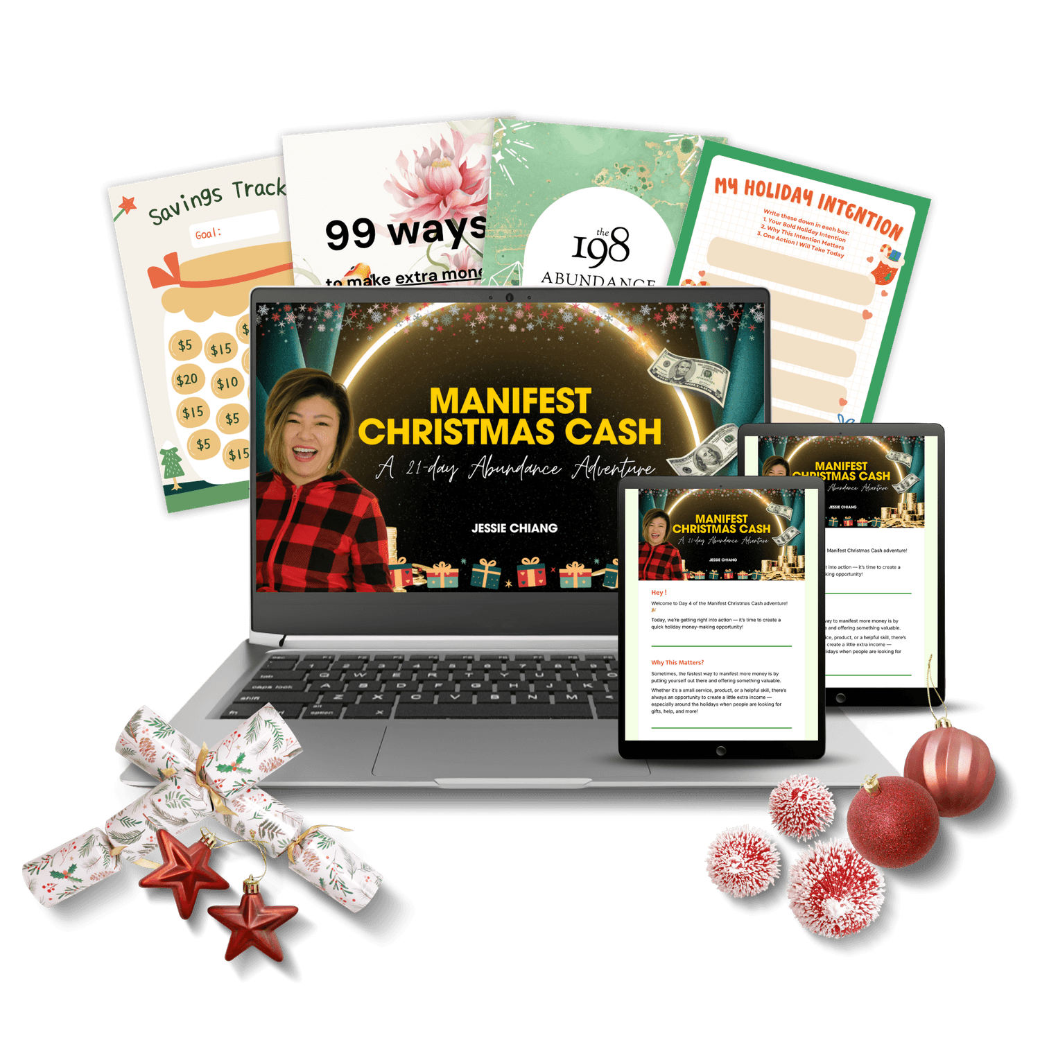 Manifest Christmas Cash is a 21-day email series, one email a day with a tiny mindset shift and one clear 5–10 minute action.
